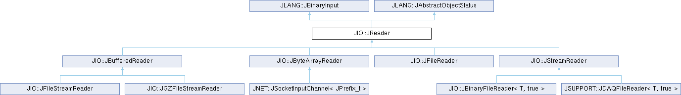 Implemented in JIO::JBufferedReader, JIO::JBufferedWriter, JIO::JByteArrayReader, JIO::JByteArrayWriter, JIO::JFileReader, JIO::JFileWriter, JIO::JStreamReader, JIO::JStreamWriter, JLANG::JObjectStatus, JLANG::JRedirectStream, JLANG::JRedirectString, JPARSER::JCounter, JSYSTEM::JShell, and JSYSTEM::JStat.
