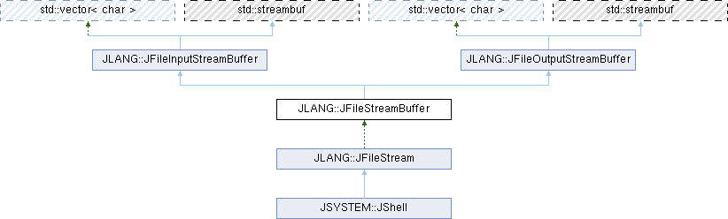 JLANG::JFileInputStreamBuffer JLANG::JFileOutputStreamBuffer std::vector< char > std::vector< char > JLANG::JFileStream JSYSTEM::JShell