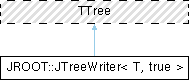 Inheritance diagram for JROOT::JTreeWriter< T, true >: