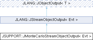 Inheritance diagram for JSUPPORT::JMonteCarloStreamObjectOutput< Evt >: