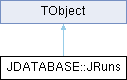Inheritance diagram for JDATABASE::JRuns: