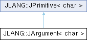 Inheritance diagram for JLANG::JArgument< char >: